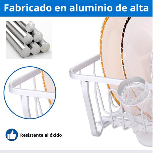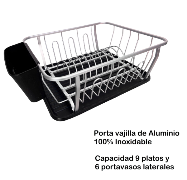 Descubre el escurridor de platos 'Escurre Seca Platos Hogar Actual Aluminio Con Bandeja 448', una solución práctica y elegante para tu cocina. Fabricado en aluminio inoxidable y con un atractivo color gris, este escurridor combina durabilidad y estilo. Su capacidad permite acomodar hasta 9 platos, mientras que cuenta con 6 porta vasos para mayor funcionalidad. Incluye una bandeja y cubiertero de PVC, facilitando la recolección de agua y la organización de utensilios. Con unas medidas de 32.5 cm de ancho, 37 cm de largo y 14 cm de alto, su diseño de apoyo se adapta perfectamente a cualquier espacio. Este modelo de acero pintado no es extensible, pero su diseño de un solo nivel y la inclusión de secavasos y cubiertero lo convierten en una opción ideal para mantener tu cocina ordenada y eficiente.