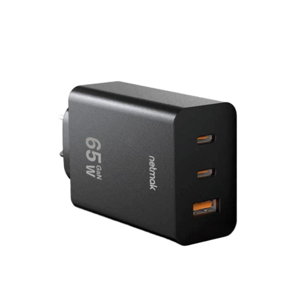 El Cargador GaN NM-CP42 de 65W te permite cargar hasta tres dispositivos simultáneamente con la máxima velocidad y seguridad.