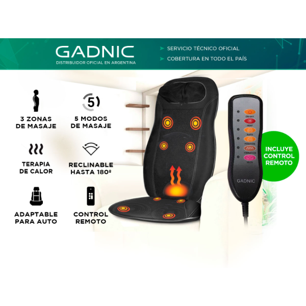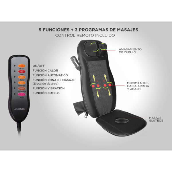 Asiento Masajeador Gadnic Cuello Espalda y Glúteos 5 Modos Terapia de Calor