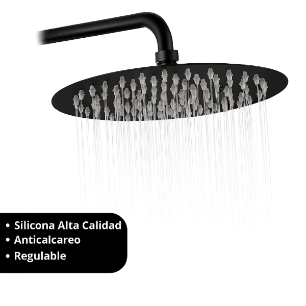 Esta ducha de lluvia redonda de acero inoxidable de 8 pulgadas presenta un acabado negro elegante y está diseñada para instalación en el techo en baños. Hecha de acero inoxidable 304 duradero, asegura un flujo de agua a alta presión (0,6-0,8MPA) mientras ofrece una funcionalidad ecológica de ahorro de agua.