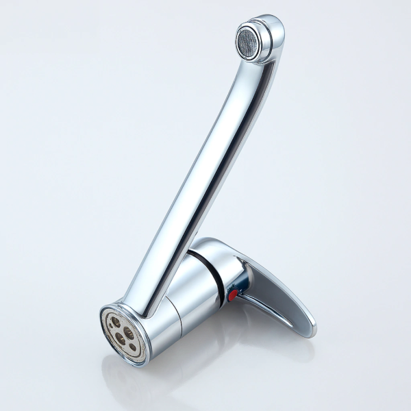 Grifería monocomando de diseño contemporáneo, fabricada en cuerpo de acero de alta calidad con acabado cromado pulido. Su diseño ergonómico y funcionalidad permiten un control preciso de la temperatura y el caudal de agua con una sola mano.