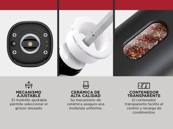 Ya sea que estés preparando una cena especial o simplemente sazonando tus platos diarios, este molinillo eléctrico es tu aliado perfecto en la cocina.