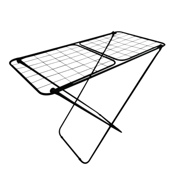 Tendedero plegable de pie con alas, fabricado en acero cubierto con pintura epoxi resistente a la humedad.