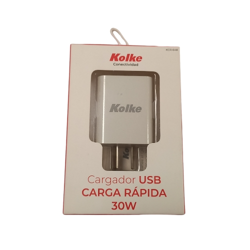 Cargador 220v - USB Type-C -3A -carga rapida 30W -blanco -Kolke (KCR-648 630441)