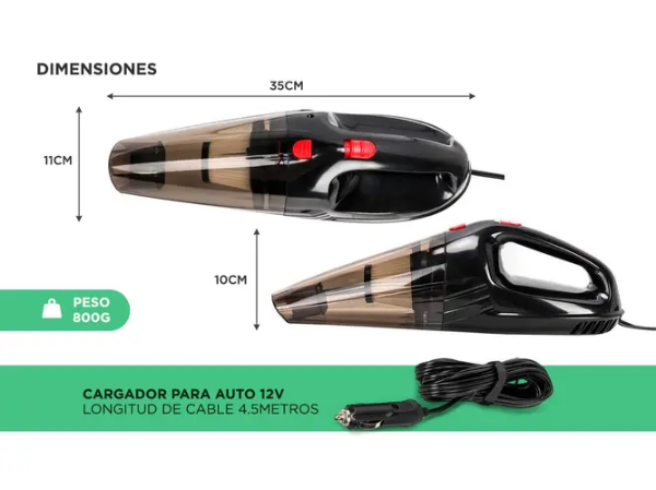 Limpia sobre seco con una succión de gran alcance. La aspiradora posee filtro Hepa y es perfecta para todos los vehículos. Su tamaño es ideal para poder transportarla sin problema a todas tus travesías, además poder llevarla en su bolso para así tener mas comodidad aun.