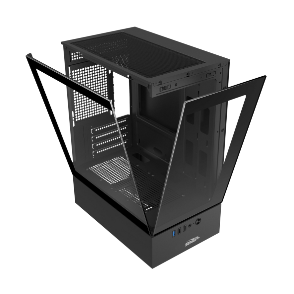 Gabinete Gamer Negro Paneles de Vidrio 5 Coolers ARGB Sentey H10 (6100-ARGB-SFBLACK)