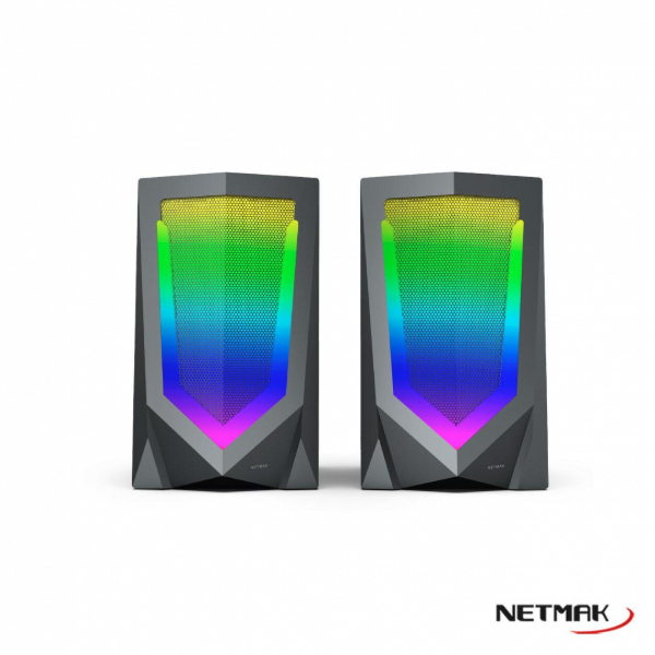 Parlantes 3w Gamer Miniplug 3.5mm Power Y Rgb Con Luces Led Color Negro Netmak (NM-N10)