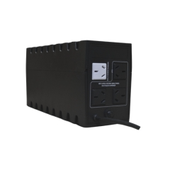 Es del tipo off-line con estabilizador incorporado lo que le permite tener un amplio rango de trabajo. Cuando la tensión de la red de distribución eléctrica está presente (modo línea) el UPS acondiciona la tensión de entrada, estabilizándola para energizar los equipos conectados y además carga la batería. Si la tensión de entrada es anormal o se interrumpe (modo batería), el UPS podrá abastecer a los equipos conectados inmediatamente a partir de la energía almacenada en la batería, permitiendo al usuario hacer un sierre de sistema ordenado a través del software de interface UPSMON evitando así la perdida de información por rotura de archivos, bases de datos, etc. Está equipado con batería de electrolito absorbido, libres de mantenimiento. El circuito cargador carga aún la batería estando apagado y enchufado a la red eléctrica.